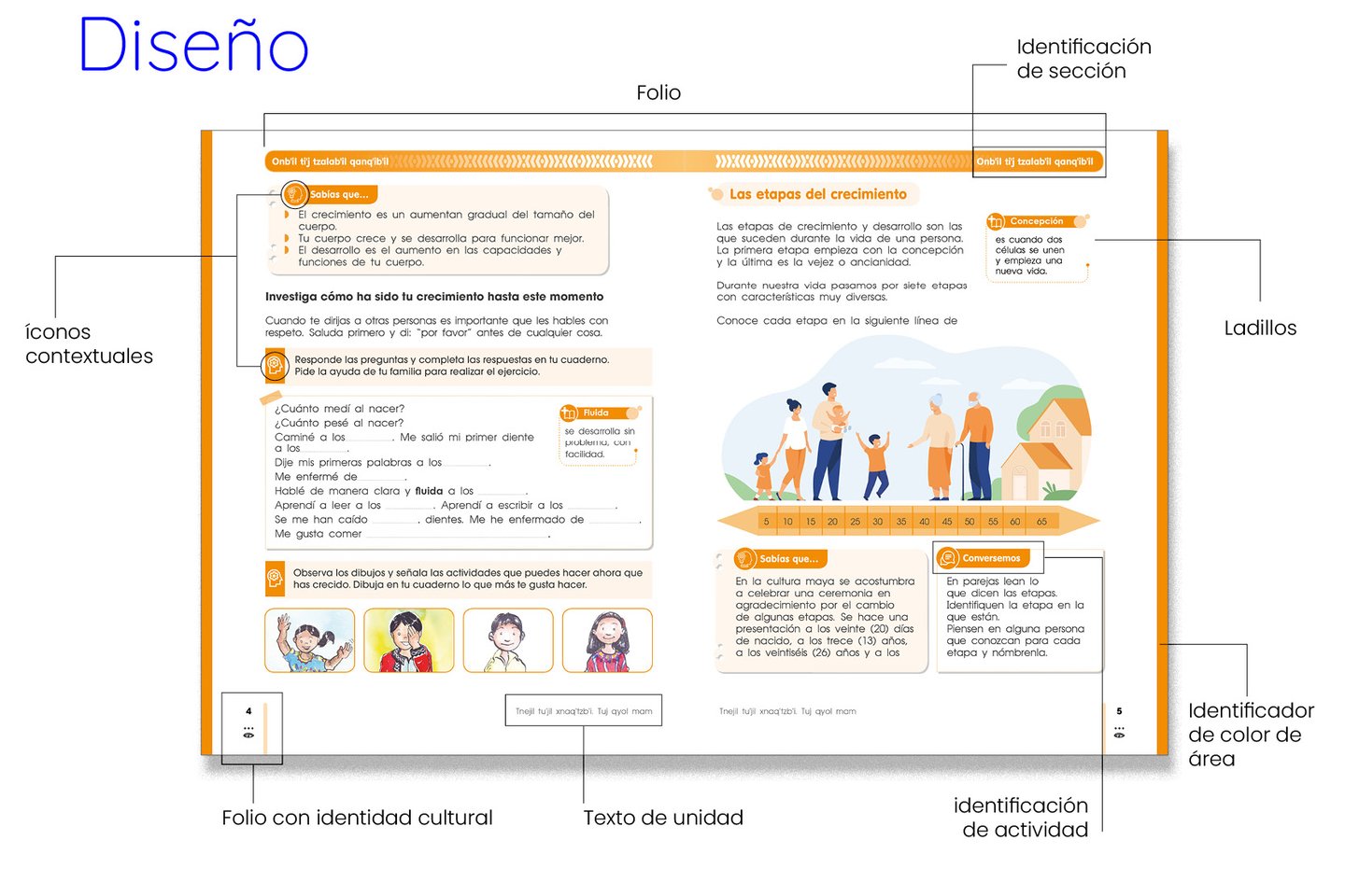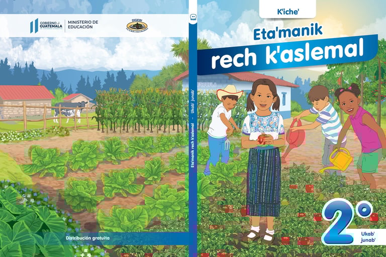 Diseño de libros de 2º. a 6º. primaria en idiomas Mam y K'iche